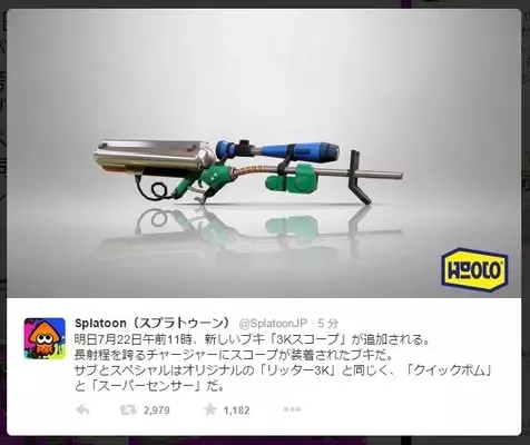 スプラトゥーン 10月10日に新ブキ追加 今回は ロングブラスター 3kスコープ のカスタム版 15年10月9日 エキサイトニュース